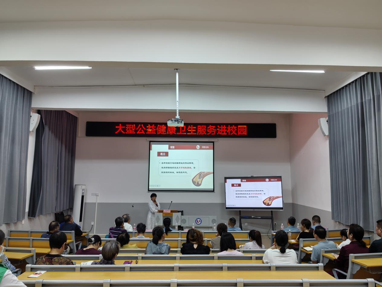 为响应广大离退休教职工的呼声,进一步宣传脑卒中防治知识,提高防治意识,6月28日上午,学校离退休党总支、后勤基建党总支联合开福区洪山街道社区医院,开展了“党建引领聚合力,健康服务践初心”大型公益健康服务进学校活动,邀请中南大学湘雅医院专家现场为学校离退休老同志及在职教职工授课并义诊。