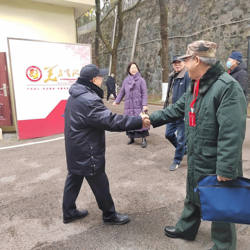 12月20日上午,中共长沙市科大佳园军队离休退休干部服务站第十七党支部来我校开展加强新时代离休退休干部党建工作,就“五化、六好”创建省市示范支部考察交流。