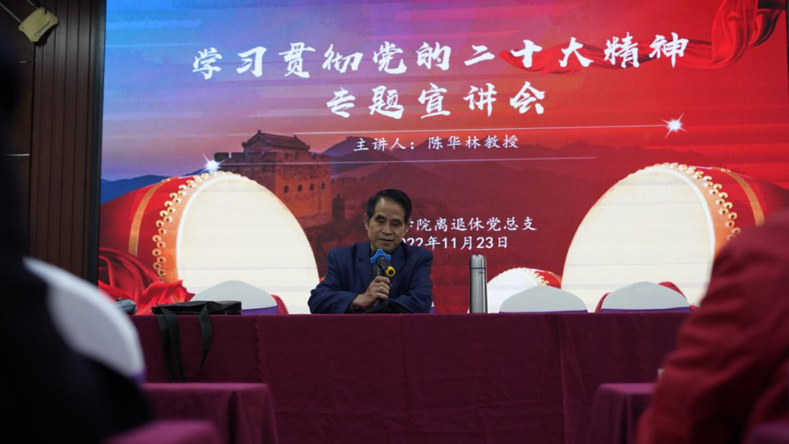 为推动党的二十大精神深入浸润校园,提升离退休老党员的思想意识和党性修养,11月23日上午,长沙学院离退休党总支组织学习贯彻党的二十大精神专题宣讲会。会议由离退休党总支副书记周玲主持,陈华林教授主讲。